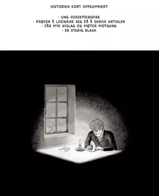 Jeg vil snakke litt om Sult og Hamsun, men også om prosessen med å gjøre en roman om til tegneserie. Jeg viser frem bilder med projektor mens jeg snakker; bilder av skisser, storyboards, og også skritt for skritt hvordan jeg tusjer og fargelegger en ferdig side. Til sist vil jeg snakke om tegneseriemediets virkemidler, og hva som skiller romanen fra adapsjonen.