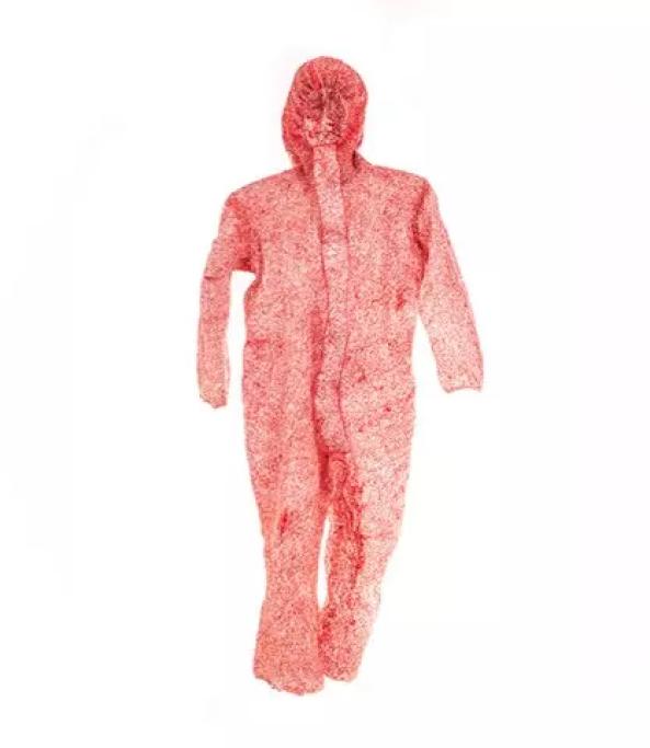 Personal Protection Equipment (PPE) er en drakt tett dekket av med nettverk av broderte røde tråder. Inspirasjonen til dette kunstverket kom bl. a. fra biohazard-draktene som brukes av medisinsk fagfolk i ebolainfiserte områder, og av forskere som jobber med dette viruset i labratoriene.